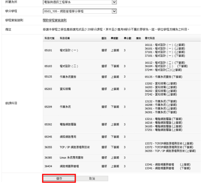 4️⃣點選所屬系所 電機系/電通系/電子系,並挑選想要的學分學程以後-> 儲存